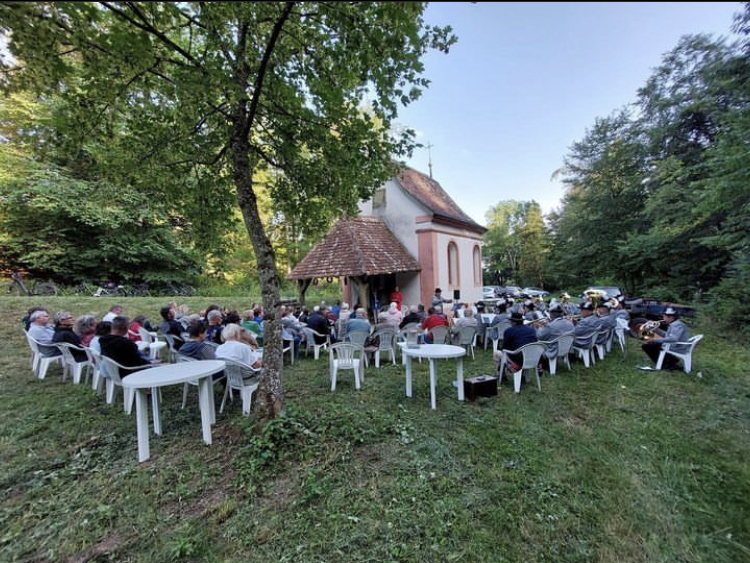 Am 2.7.23 umrahmten wir den Gottesdienst in der Kapelle Maria Nötenwang musikalisch. Maria zu Ehren wurde auch in diesem Jahr eine Andacht gefeiert. Zu diesem Anlass spielten wir Marienlieder. Bei schönem Wetter konnte die Andacht vor der Kapelle gefeiert werden, da diese selbst nur Platz für wenige Besucher bietet. Die Kapelle Maria Nötenwang liegt etwas außerhalb von Inneringen in Richtung Egelfingen und kann zu Fuß, mit dem Auto oder Fahrrad von Inneringen aus erreicht werden.