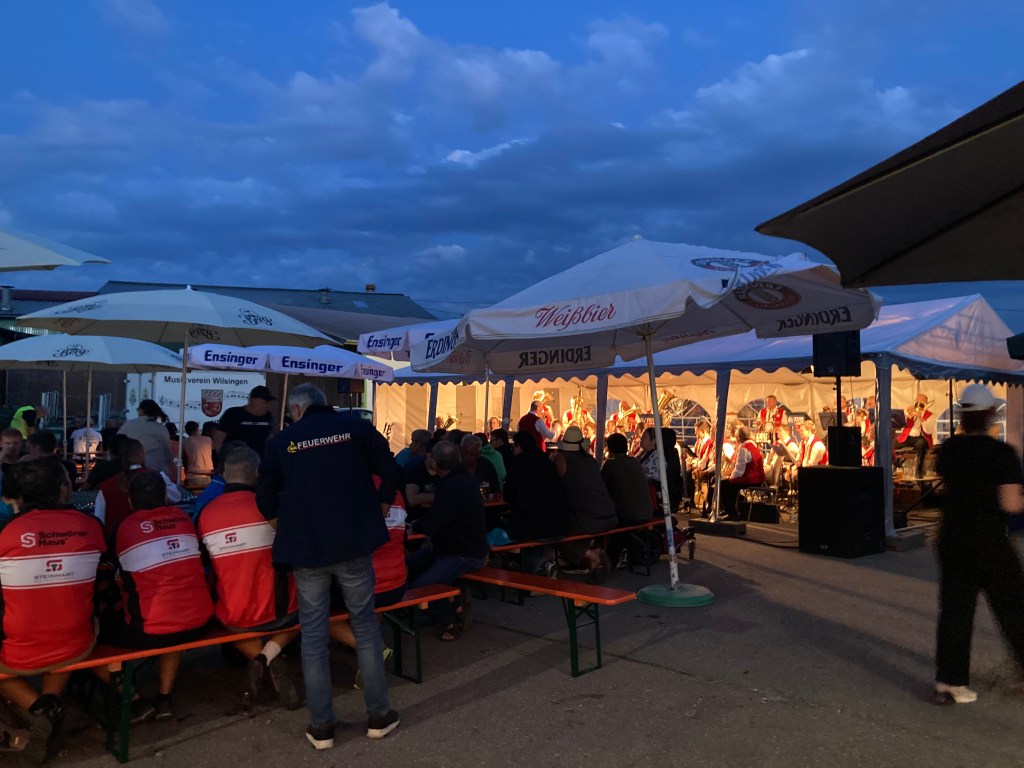 Ab 19.30 Uhr gestaltete der Musikverein Wilsingen den Feierabendhock. Das Wetter lud zum Verweilen ein und so konnte der Musikverein Inneringen mit Wurstsalat, Schnitzelwecken, Hähnchen und weiteren kulinarischen Extras viele Gäste begrüßen.