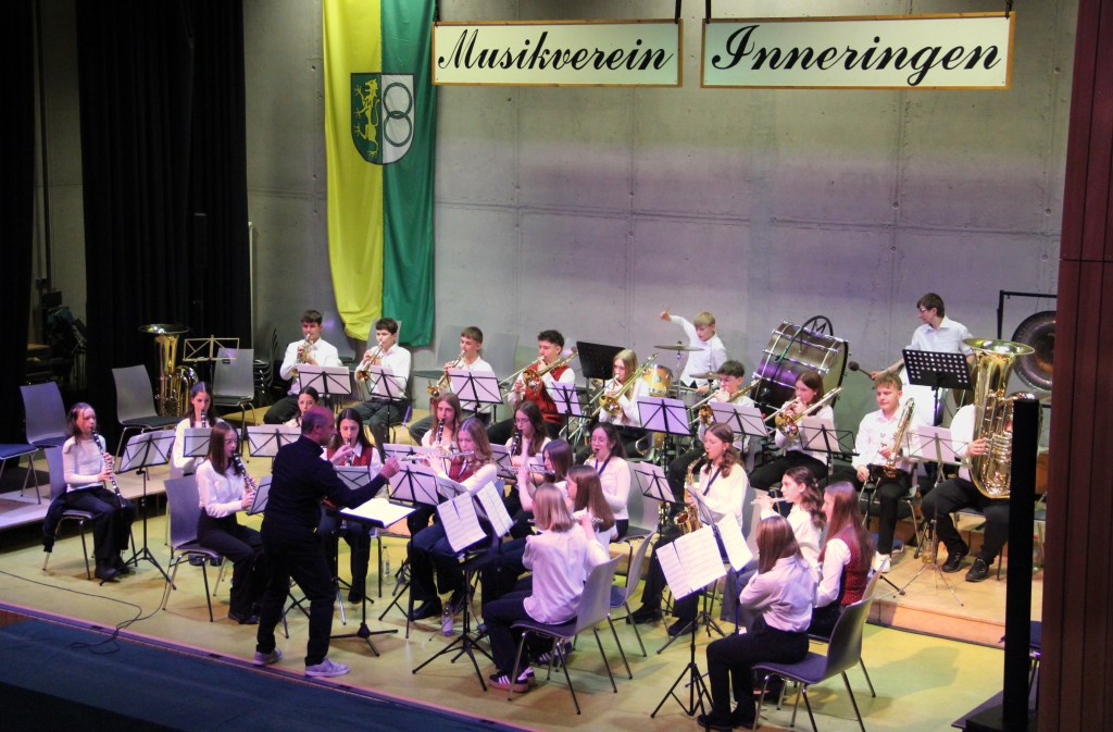 Pünktlich startete die Jugendkapelle „Around the Sound“ unter der Leitung von Dietmar Pelz mit ihren Stücken „Transformers“, „A Million Dreams“ und „Viva la Vida“. Die Jugendlichen aus den Vereinen aus Inneringen, Hettingen, Veringendorf, Veringenstadt, Neufra, Kettenacker, Gammertingen, Feldhausen und Harthausen spielen auf hohem Niveau und zeigten auch beim Konzert wieder, was sie drauf haben.