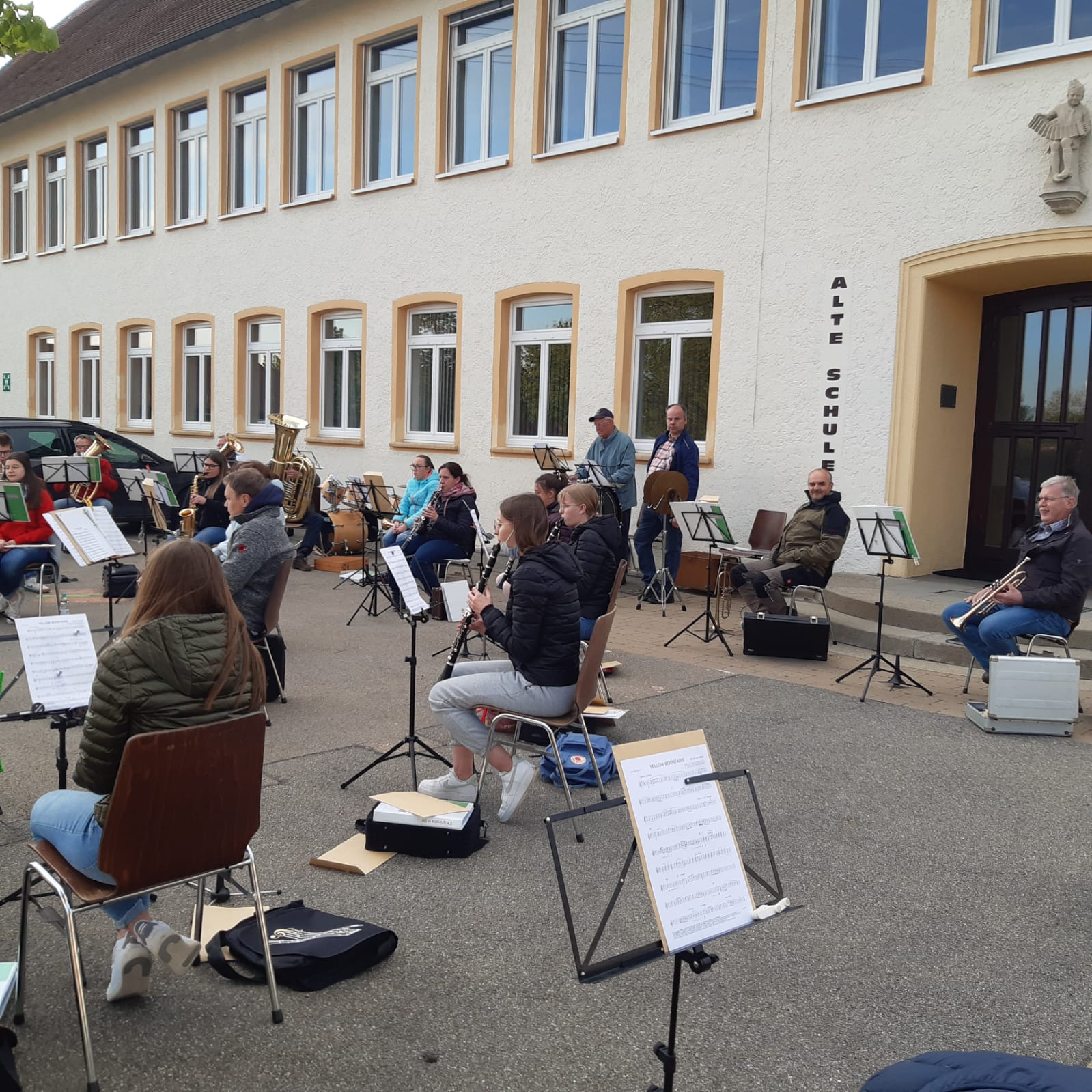 Unsere erste Probe in 2021 am 25.5.2021 auf dem Schulhof.