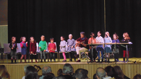 Auf der Bühne saß die Musikalische Früherziehung unter der Leitung von Marlene Hau. Gemeinsam spielten die Kinder ein paar verschiedene Lieder und zeigten ihren stolzen Eltern und Zuhörern ihr Können.