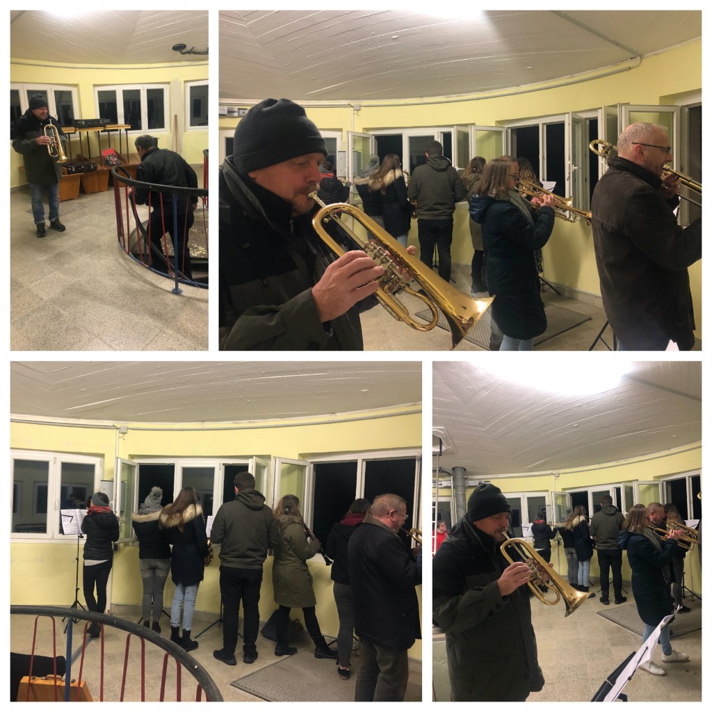 Die lange Tradition hat sich auch in 2019 fortgesetzt und so trafen sich einige Musikerinnen & Musiker am Heilig Abend kurz vor 24 Uhr auf dem Wasserturm um pünktlich um Mitternacht gemeinsam ein paar Weihnachtslieder zu spielen.