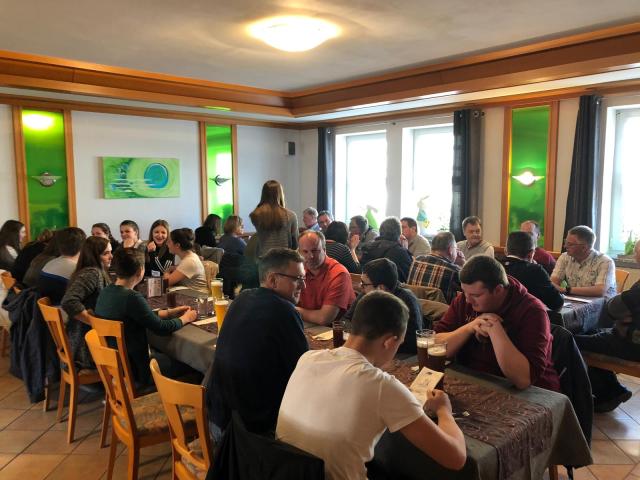 Die erste Hälfte am Samstag ist geschafft – gemeinsame Mittagspause im Gasthaus Adler.