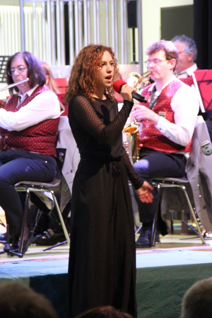 Bevor es sich der Musikverein in die Pause verabschiedete, stellten die Musiker mit einem humorvollen Video ihr Crowdfunding Projekt zur Finanzierung einer neuen Uniform vor. Mit „ABBA Gold“ und einer Tanzchoreografie leitete der Musikverein die zweite Hälfte des Konzertabends ein. Das Highlight des Abends bildete „Skyfall“ aus dem gleichnamigen James Bond Film. Mit den Worten „Ihr Name ist Metzger. Lara Metzger“, führte Mona Reuthebuch in die Gesangseinlage von Lara Metzger ein. „Udo Jürgens live“, „Weinkeller-Polka“ und „Thank you for the music“ bildeten den Abschluss des Konzertprogramms. Die Zugaben „Bodensee Polka“ und „Viva la vida“ rundeten einen gelungenen Abend ab.