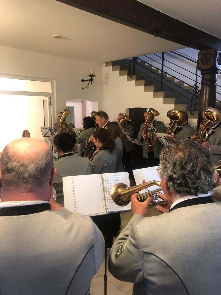Am 5.5.25 hatten wir die Ehre unserem langjährigen Mitglied Andreas Hospach ein Ständchen zu seinem 55.Geburtstag zu spielen. Da es aufgrund von Corona nicht möglich war, seinen 50.Geburtstag groß zu feiern, beschloss er seinen Schnapszahlgeburtstag, den 55., größer zu feiern. Da ließen wir es uns natürlich nicht nehmen ihn ordentlich musikalisch zu beglückwünschen.