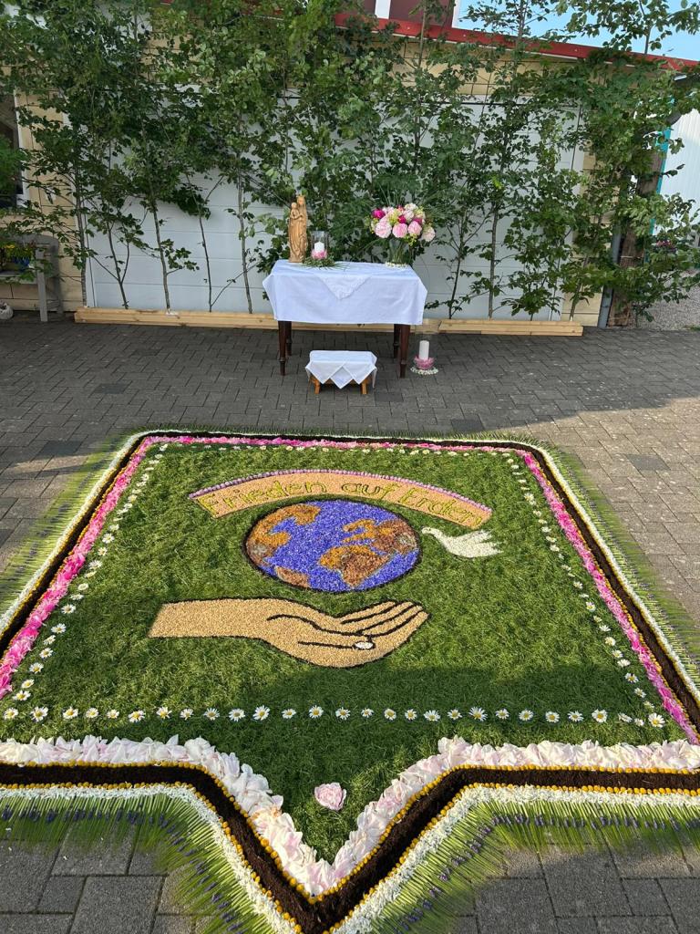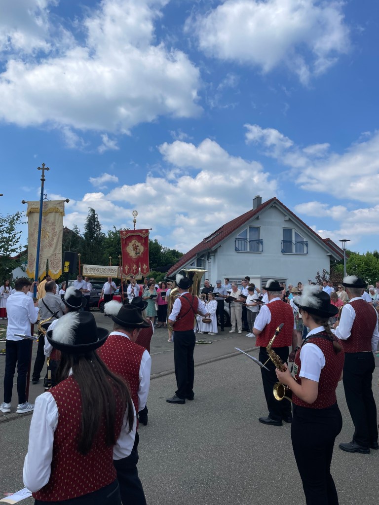 Nach der Stärkung war der Tag für uns noch nicht zu Ende. Im Anschluss an den Fronleichnamsgottesdienst in Inneringen umrahmten wir die Prozession zu den verschiedenen Blumenaltären musikalisch.