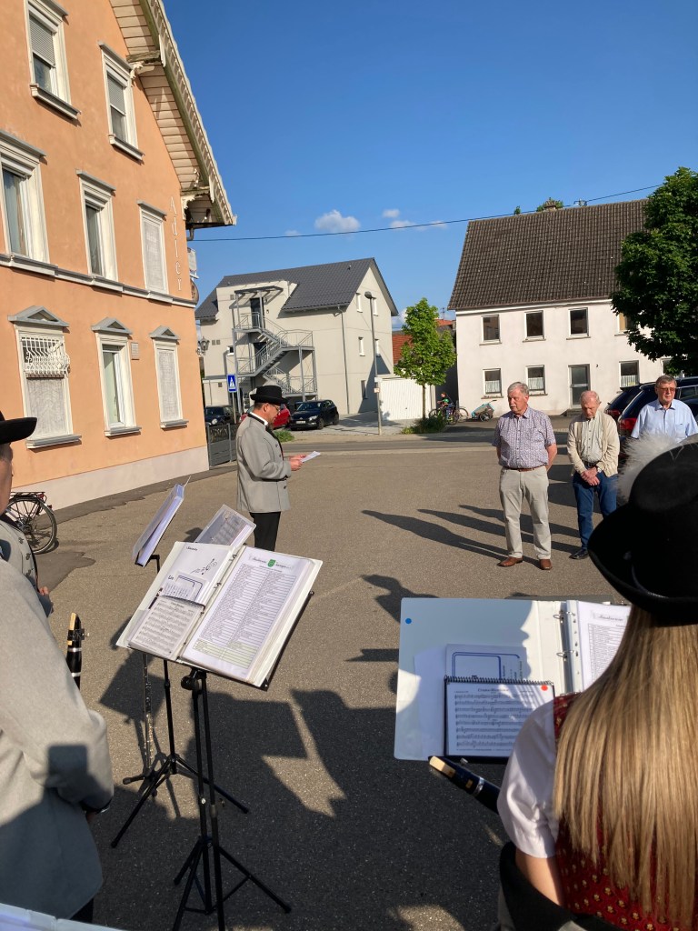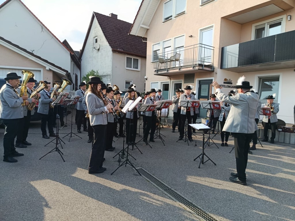 Am 16.6.25 hatten wir die erneute Ehre einem weiteren langjährigen Mitglied unseres Vereins ein Ständchen zum Geburtstag zu bringen. Mit 70 Jahren ist Franz Sommer immer noch aktiv an der Trompete dabei. Unser 2.Vorsitzender Roland Knaus hielt eine kleine Rede zu Ehren von Franz. Zu Gunsten unserer Uniform, verzichtete Franz auf ein Geschenk vom Musikverein zu seinem Geburtstag. Vielen Dank dafür! Im Anschluss an das Ständchen ließen wir den Abend im Gasthof Adler ausklingen.