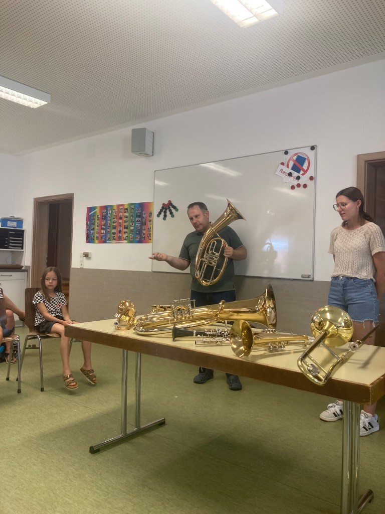 Bald ist es soweit und ab September startet eine neue Generation zukünftiger Musiker/innen in die musikalische Ausbildung in unserem Verein. Um für jeden das passende Instrument zu finden, fand am 28.6.25 im Proberaum in Inneringen eine Instrumentenvorstellung statt. Hier konnten die Kinder etwas zu den verschiedenen Instrumenten erfahren, diese selbst ausprobieren und hören, was alles zur musikalischen Ausbildung in unserem Verein gehört. Für die Eltern war vor allem interessant, wie der Mietkauf der Instrumente funktioniert, welcher in unserem Verein angeboten wird. Die Kinder haben nun bis kurz vor die Sommerferien Zeit, sich für ein Instrument zu entscheiden. Wir sind gespannt und freuen uns darauf zu sehen, wen wir alles im Herbst in unserem Verein begrüßen dürfen.