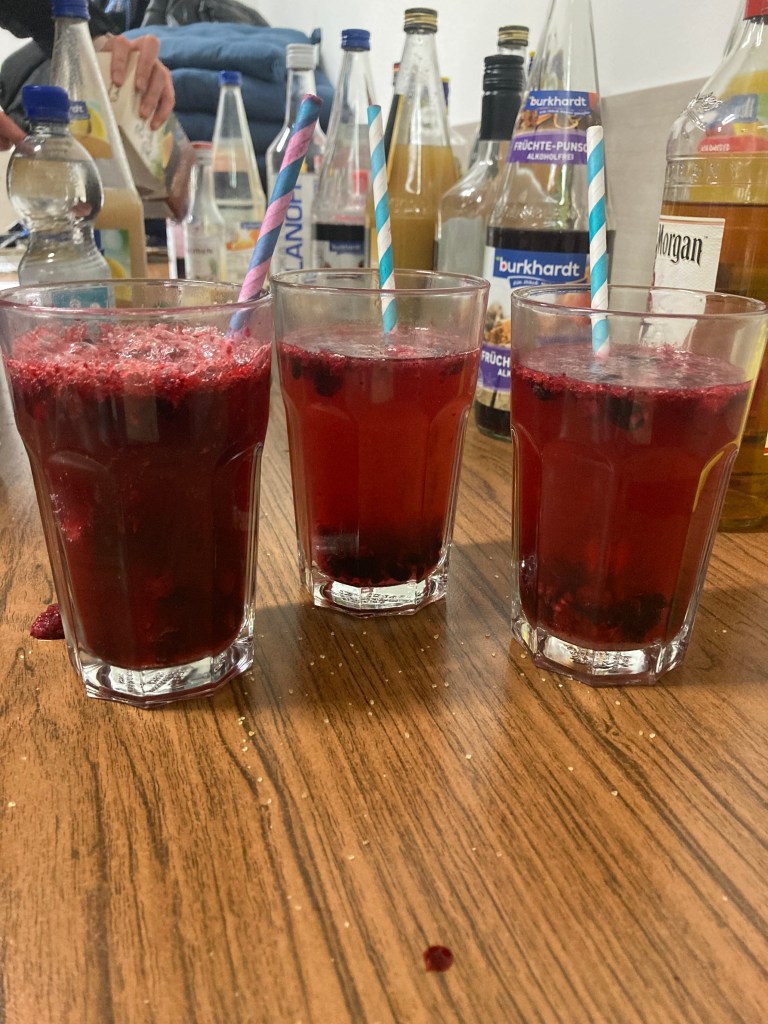Auch an Getränken mangelte es nicht , so konnte jeder , der wollte sich selbst einen Cocktail mixen.