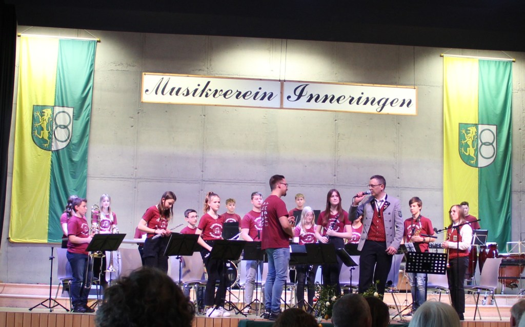 Pünktlich um 19.30 Uhr begrüßte die Jugendkapelle „Around the Sound“ der Musikvereine Inneringen, Hettingen und Veringendorf unter der Leitung von Simon Lieb die gut gefüllte Halle mit dem Stück „Air for Winds“. Im Anschluss an die Begrüßung durch den Vorstand Thomas Metzger zeigte die Jugendkapelle mit „Dance Starters“ ihre Wandelbarkeit und schloss mit dem Stück „8H Ballade“ und der Zugabe „Cups“ ihren Vortrag.