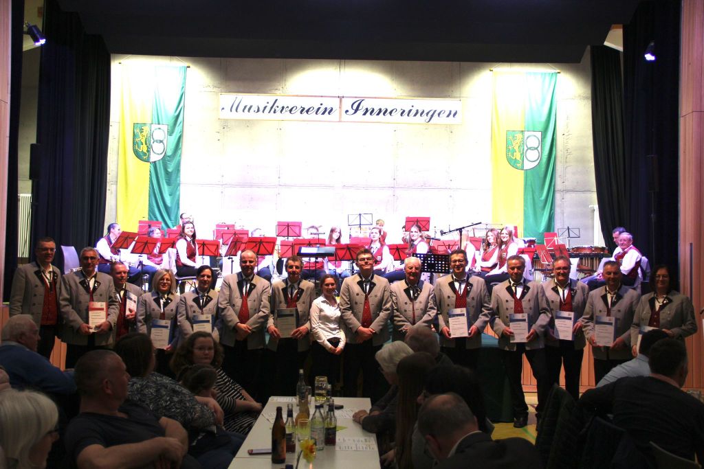 In diesem Jahr konnten insgesamt 14 Ehrungen erfolgen. Begonnen wurde bei zehn Jahren Mitgliedschaft bei Lara Metzger und Hannes Reiser. Für 20 Jahre konnte Christian Metzger geehrt werden. 30-jährige Musikerschaft konnten Silvia Nothhelfer und Kerstin Teufel feiern. Für 40 Jahre wurden Margot Jöckel, Roland Knaus, Alwin Traub, Ottmar Teufel, Andreas Hospach und Armin Hospach geehrt. Zusätzlich zu 40 Jahren als Musiker wurde Michael Muntowitz für 25 Jahre als Dirigent geehrt. Ein ganz besonderes Jubiläum konnte Eduard Metzger mit 70 Jahren als Musiker feiern. Ganz im Sinne der vorangegangenen Ehrungen wurde für und mit den Geehrten die Polka „Ein Herz für Blasmusik“ gespielt.