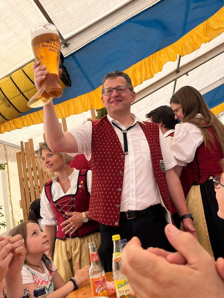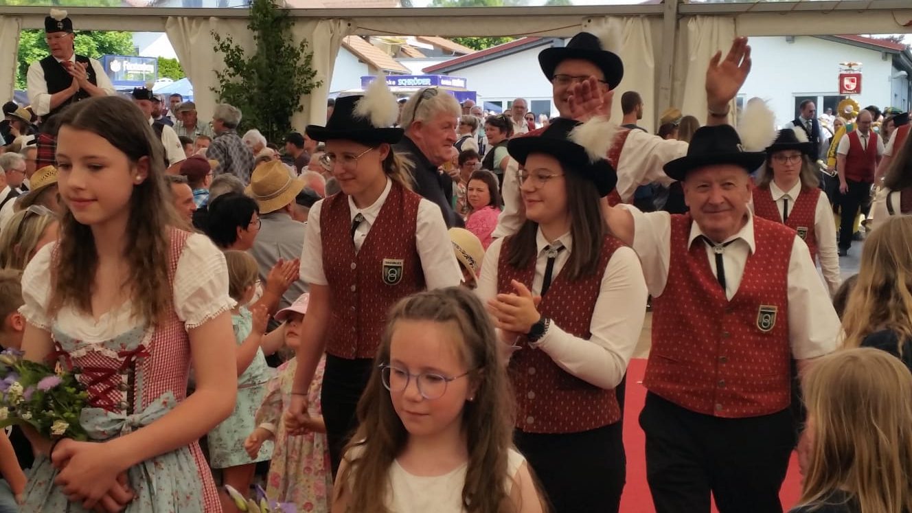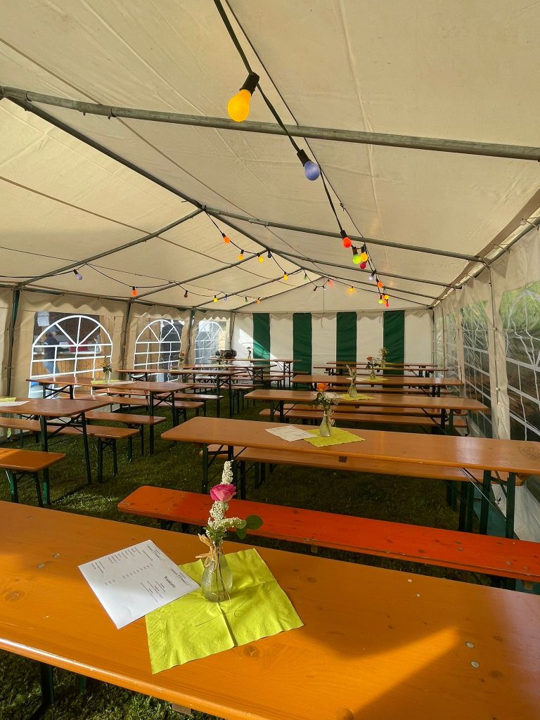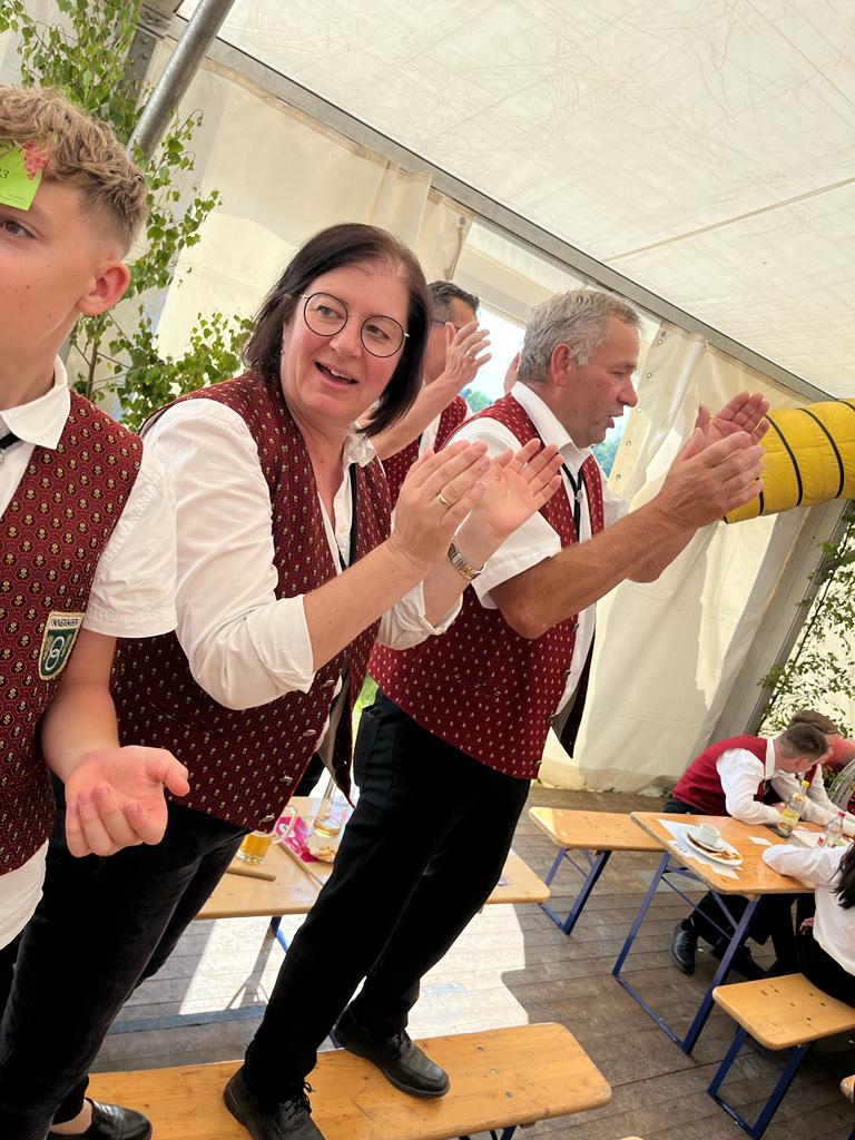 Nach dem Fahneneinmarsch gab es eine „Liesl“ als Gastgeschenk. Diese war sehr willkommen bei den heißen Temperaturen. Gemeinsam ließen wir im Festzelt den Nachmittag ausklingen.