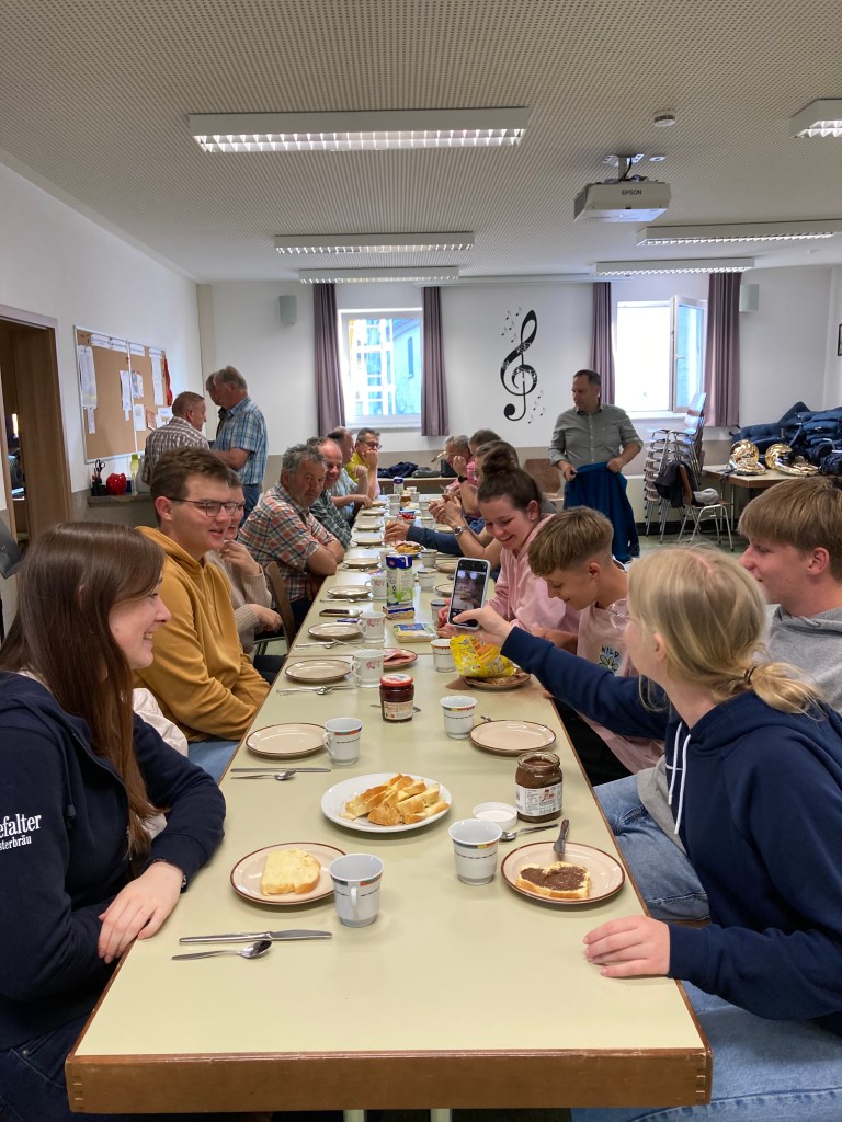 Im Anschluss an die Tagwache gab es im Proberaum ein reichhaltiges Frühstück zur Stärkung für die anschließende Fronleichnamsprozession.