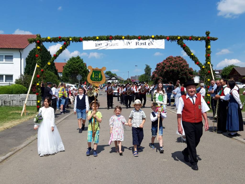 Am 4.6.23 nahmen wir am Gesamtchor und am großen Festumzug beim Bezirksmusikfest des Bezirksmusikfests in Rast teil.