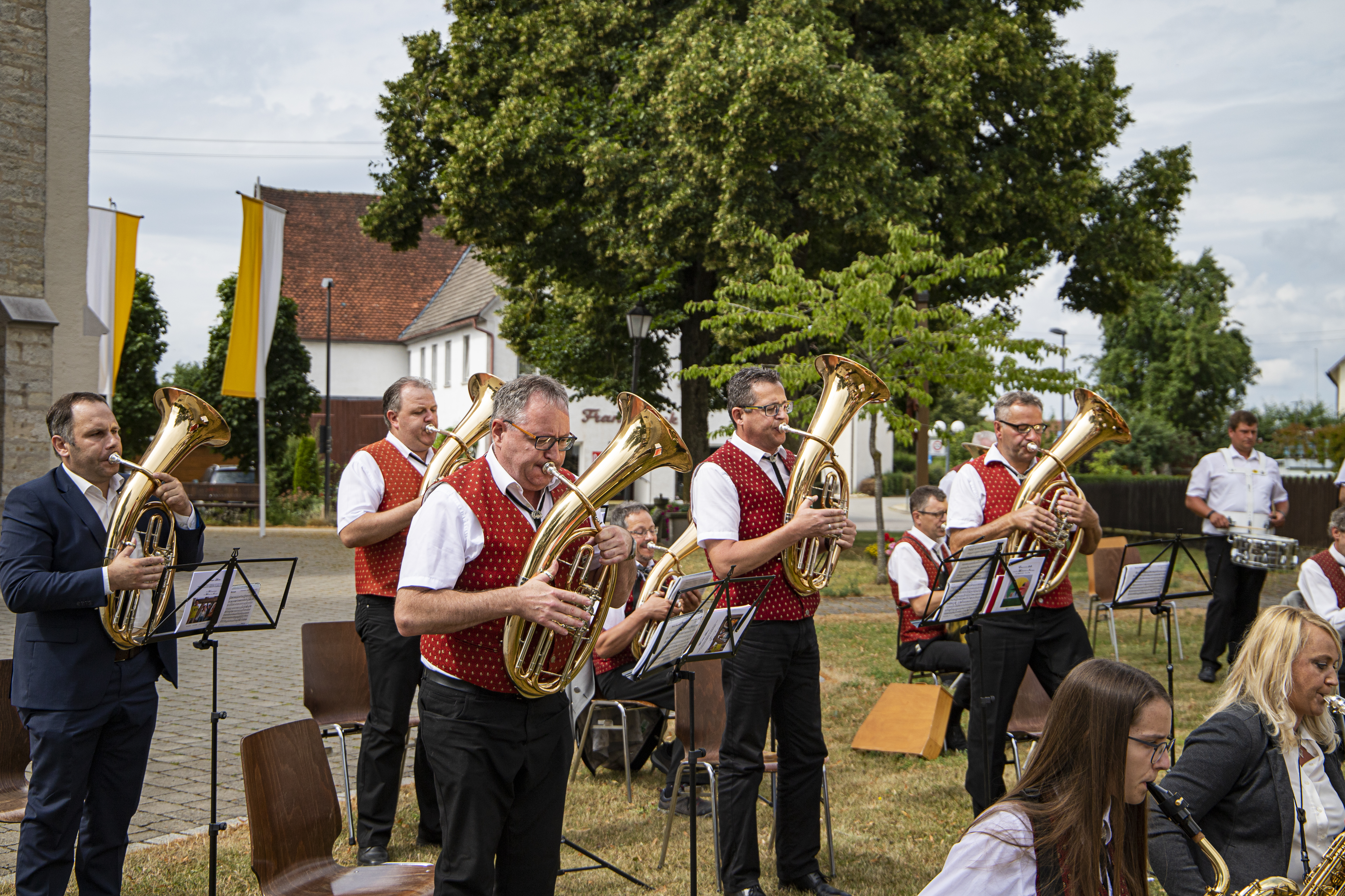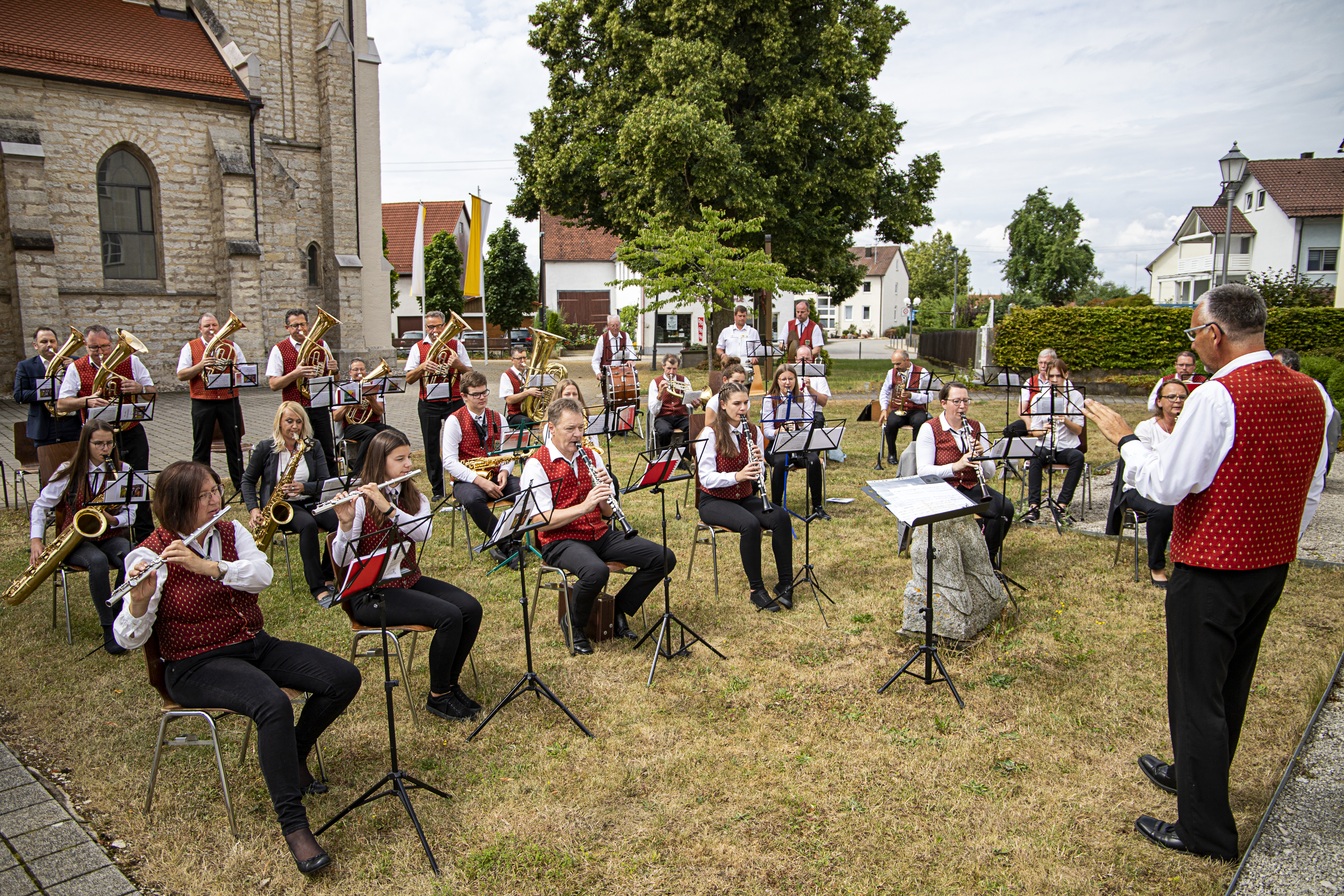 Bei unserem einzigen Auftritt in Vollbesetzung in 2020 durften wir den Gottesdienst der Erstkommunion der Kinder aus Hettingen und Inneringen musikalisch umrahmen. Hinterher gab es noch ein kurzes Platzkonzert.
