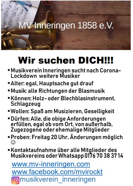 Hallo liebe Freunde der Blasmusik. So langsam kommen die Lockerungen in der Corona-Pandemie auch bei den Blasmusikvereinen an. Ab sofort ist es uns wieder möglich, Instrumentalunterricht in Gruppen bis 5 Personen anzubieten. Das ist für uns ein wichtiger Schritt Richtung Normalität und wir hoffen, dass bald auch wieder Probenarbeit im ganzen Orchester möglich sein wird.
